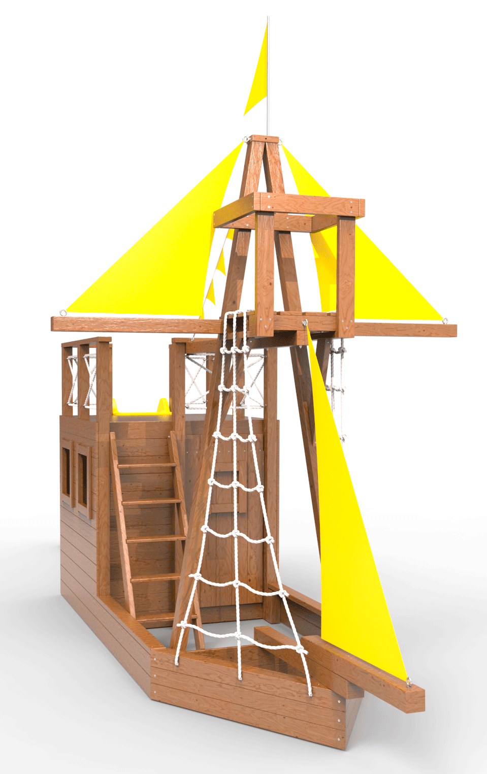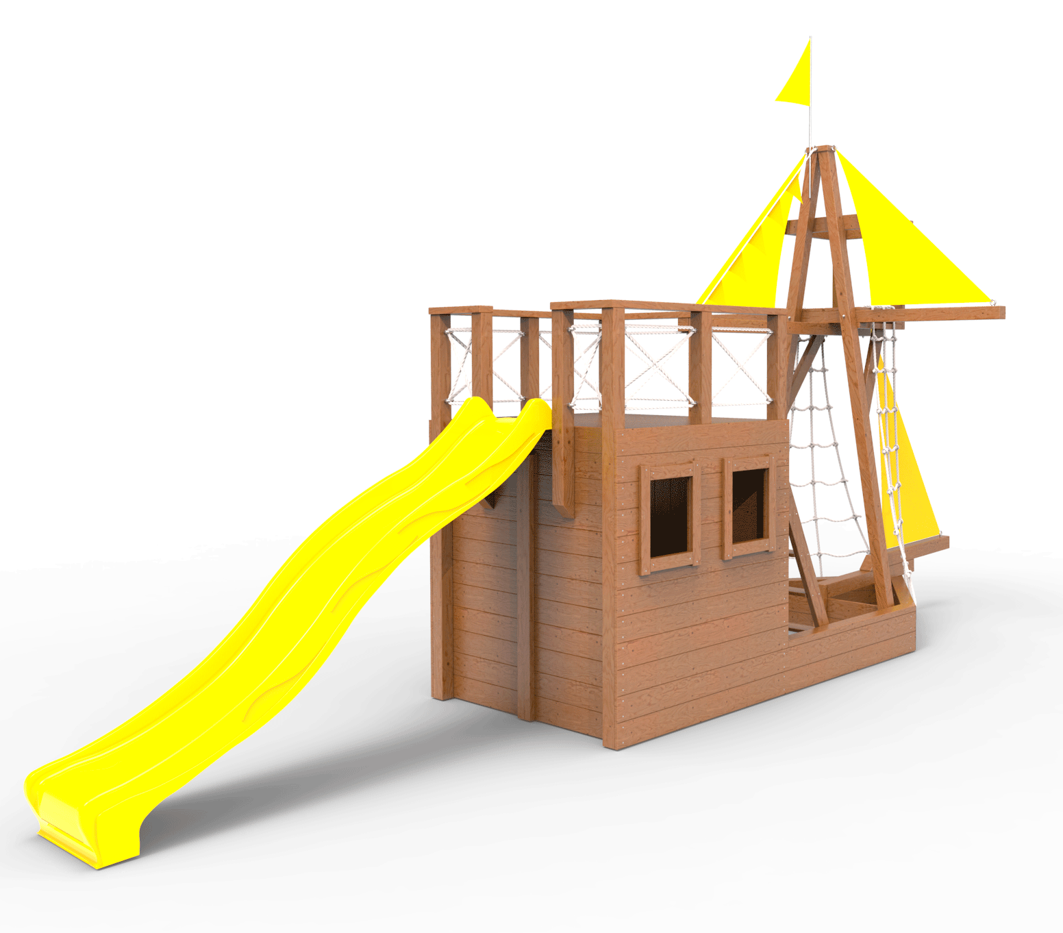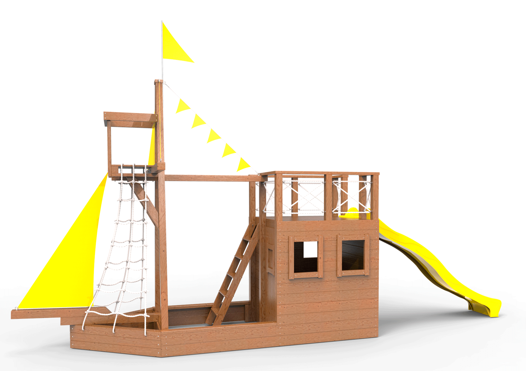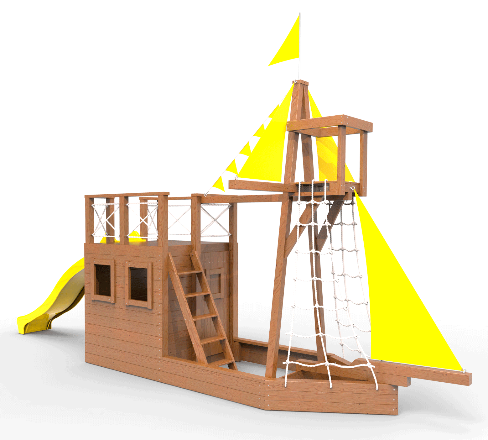 Только представьте корабль с парусами, наполняемыми ветром, с настоящей смотровой площадкой, штурвалом и уютной каютой - и все это в распоряжении вашего маленького путешественника. С такой площадкой малышу никогда не будет скучно, будь он пиратом, отважным капитаном или милой принцессой. Площадь корабля и его конструкция позволяет разыгрывать бесчисленное множество сценариев игр, а также Вы легко сможете дополнить детскую площадку спортивными и игровыми элементами, чтобы малышу стало еще веселее.