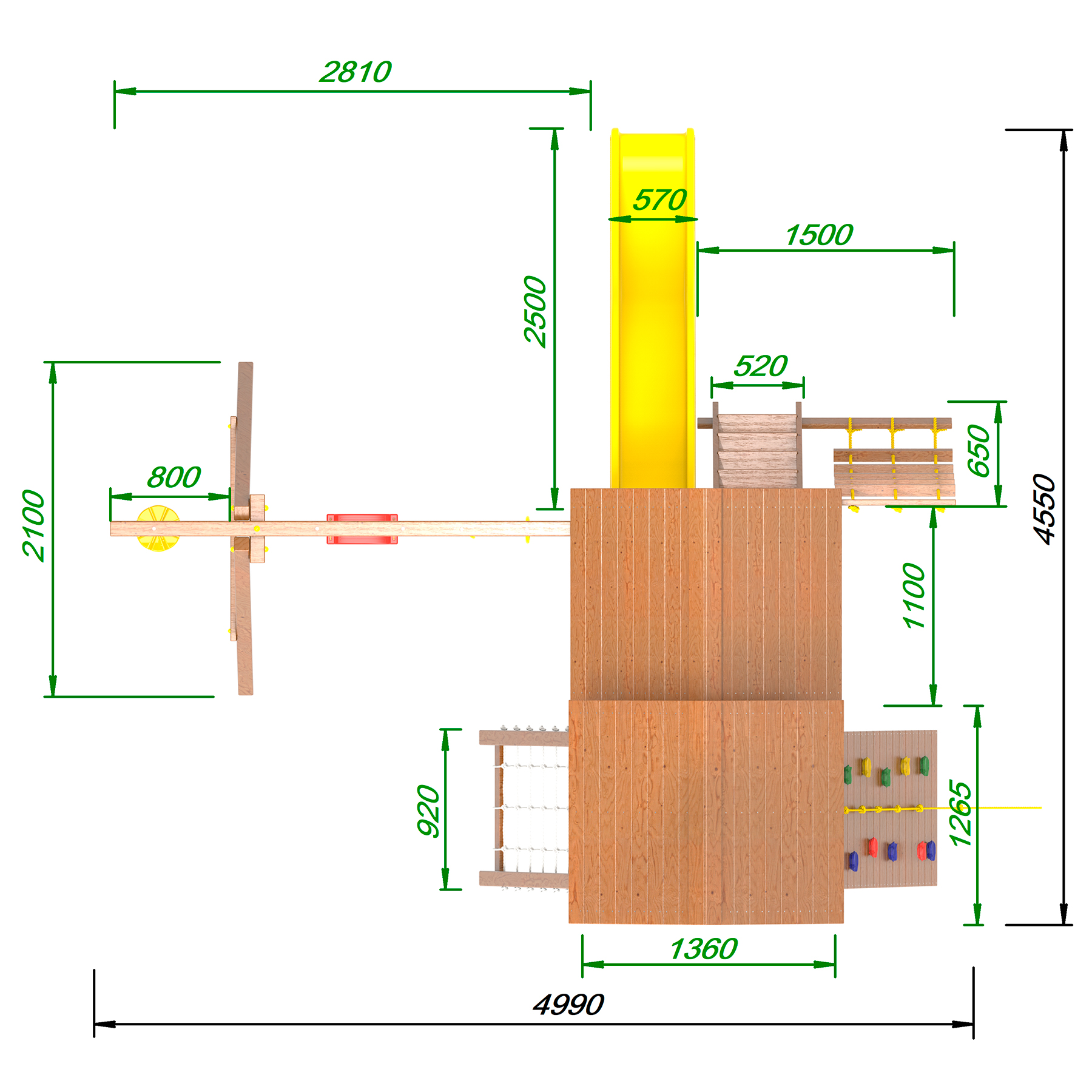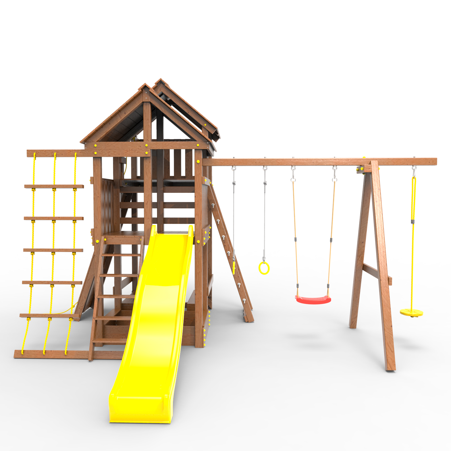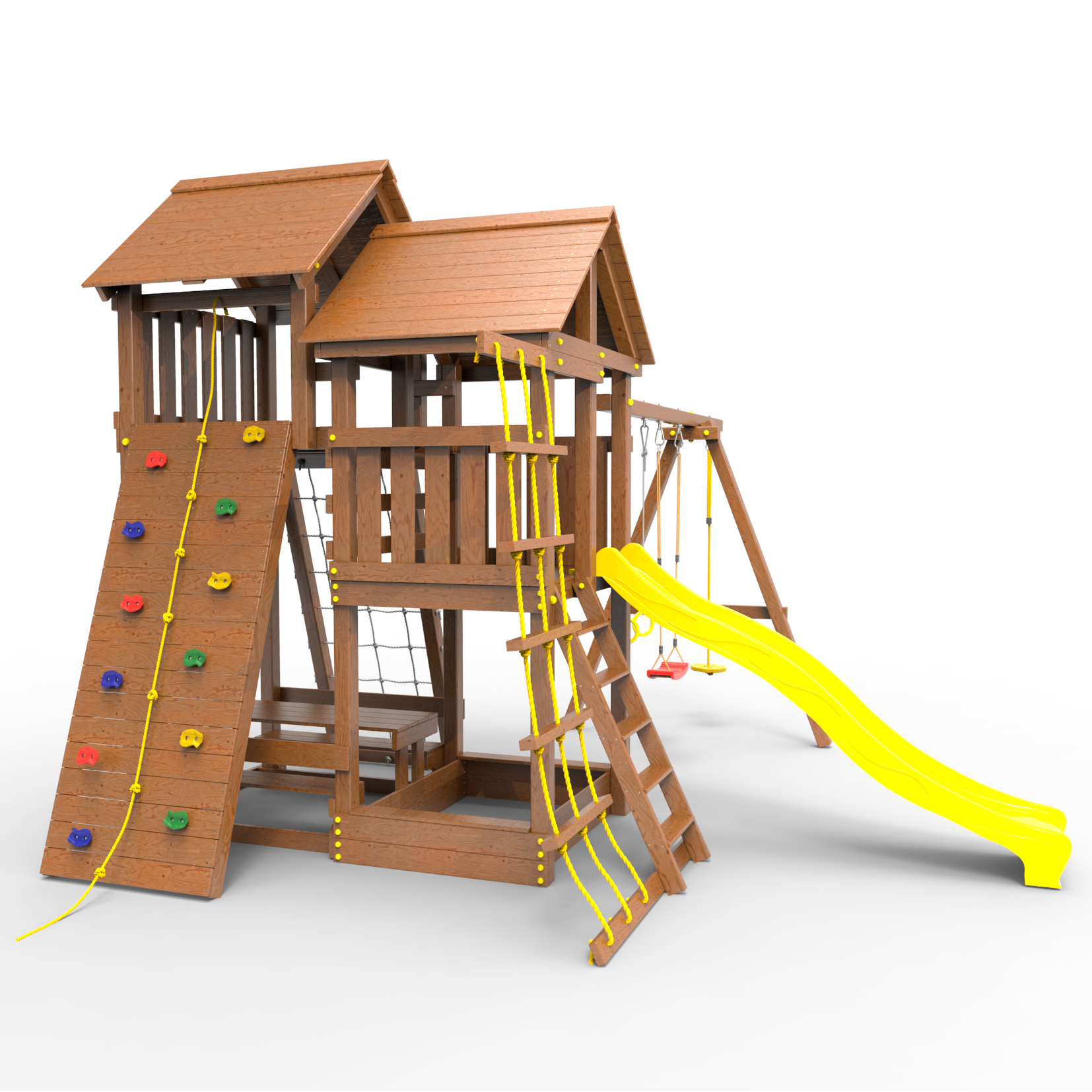 Обращаем Ваше внимание, что фактический цвет детской площадки может отличаться от представленных фото на сайте. Специфика окраски нетоксичными пропитками и красителями допускает отклонения в цветовой гамме отгружаемых изделий. Также обратите внимание, что фактический цвет может отличаться из-за цветопередачи устройства на котором Вы смотрите фото.