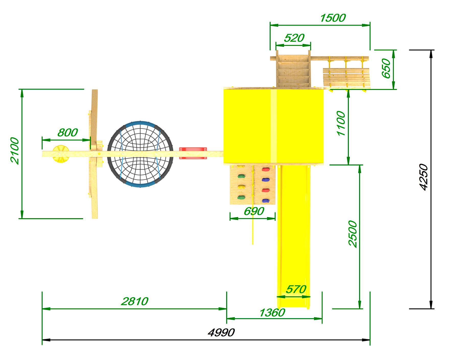 Обращаем Ваше внимание, что фактический цвет детской площадки может отличаться от представленных фото на сайте. Специфика окраски нетоксичными пропитками и красителями допускает отклонения в цветовой гамме отгружаемых изделий. Также обратите внимание, что фактический цвет может отличаться из-за цветопередачи устройства на котором Вы смотрите фото.