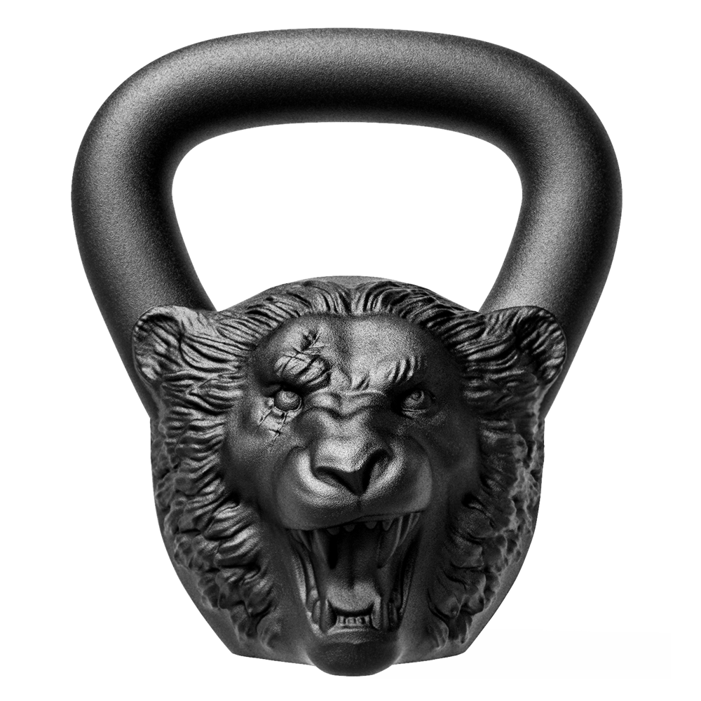 Гиря Лев. Цвет — черный или медный, вес 18 килограммов. Выполнена в виде головы льва. Ручка удобна для хвата, гиря хорошо сбалансирована.