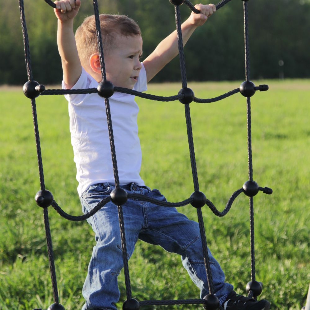 Игровой объект предназначен для детей от трех лет и старше, максимальная нагрузка на лаз не должна превышать 50кг. Сетка выполнена из прочного полипропилена. Материал устойчив к истиранию, что обеспечивает долговечность эксплуатации лаза. Фиксаторы из пластика в местах соединения каната не позволяют сетке деформироваться.